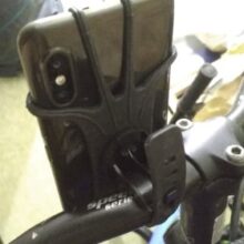 This is a decent little phone mount that is pretty cheap. It grips the handlebars tightly and won’t fall towards or away from you while you ride. Being able to rotate the screen is a nice feature also. Face ID doesn’t work because of the silicone bands, but they seem sturdy enough. When you are on a bumpier road, your phone will flop around some, but I haven’t at all been worried that it was going to fall out. Overall, it’s pretty solid.