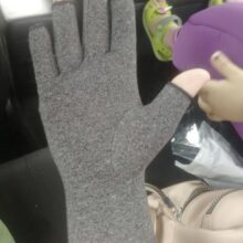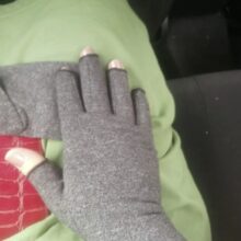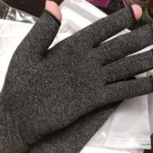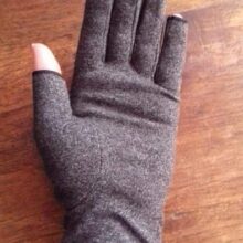 I was concerned with how small these looked when I took them out of the package (I ordered according to the sizing chart) but they fit perfectly! The fabric of these compression gloves is lovely and soft. The stitching all seems strong and all the seams lay flat so they won’t dig into your skin and cause irritation. The gloves were a bit hard to get on but that is probably because they’re brand new. My hand is just a smidgen over 3 inches wide at the knuckles so I ordered small and it was exactly the right size. The moment the glove was on, I felt almost instant relief from the pain in my knuckles and fingers. The gloves are designed with a left and right hand, rather than a interchangeable shape, which means that they fit properly around the thumb. I really like how the length of the fingers on the gloves comes up so high, providing extra warmth and comfort for the middle knuckle and a bit of the top knuckle too. Keeping the finger tips exposed means that I can type and pick things up without worry. Because the fabric is mostly cotton, it breathes well and doesn’t leave you with clammy hands. When needed, hand wash in cold water and air dry so that the elasticity doesn’t go out of them, and they won’t shrink.