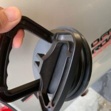 This has huge suction power on most any smooth or semi-smooth surface and is super easy to both attach and detach. The handle is sturdy and gives you a great grip for lifting any objects up to the weight capacity of the suction cup. Nice!
