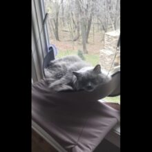 Sam is by far the biggest cat I’ve ever had the pleasure of owning. He loves to snuggle his large self into the bed and watch the goings on in the yard, tease the dog and harass the squirrels .. kitty nip was used for enticement the first few uses but after that he was enjoying with no added treats.