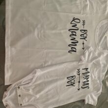 T-shirt corresponding to the description, the body when it seems to have a different material (writing is more of the kind sticker). Washed for the first time, the T-shirts did not move to see over time. As for the size, being pregnant it is difficult to judge but the t-shirt seems to suit me... I'm m, I took the Because I did not want it to be molding... Received quickly