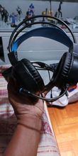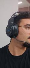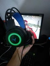 O áudio é bom e alto, mas o microfone é muito baixo (extremamente baixo por dizer). Estou no trabalho e não tenho fotos atualmente, mas a versão com led dele é bem bonita. Gostei, pena que ele aperta minha orelha depois de um tempo de uso.