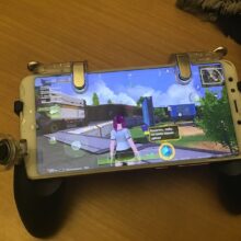 This mobile game controller is compatible with almost all large screen smartphones.