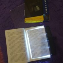 I like how it makes the page glow instead of having a hanging light above your book which is more noticeable in a room you wish to keep dark where others might be sleeping. A couple of things I was curious about... First, off I thought I might be able to place the panel behind the page I was reading so that it would glow thru essentially, but that did not work the best. You really need to place the panel ON TOP of the page you’re reading. But the good thing is you really don’t need to flip the panel from left to the right page, I found that keeping the panel on the right side it would still provide sufficient lighting to the left side. So you don’t have to move the panel as much. And for larger books, the panel may not cover the entire page but the lighting fans out so it will adequately illuminate the entire page so I found the size of the panel to be just fine. I really like this light :)
