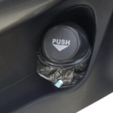 Made from non-toxic ABS plastic, our little trash bin mimics the look of large, full-sized trash cans, with a “PUSH” logo at the lid opening. The can fits right into a standard-sized cup holder for a trash bin for snack wrappers right within your reach. The can measures 7.9 x 2.7 inches (L x W).