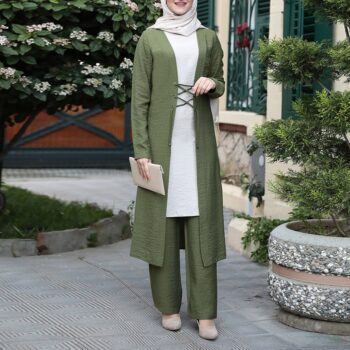 Modesty Fashion Set 2PCS Long Sleeve Split Hem Tops Loose Trousers Woman Vintage Loose Urban Tracksuits