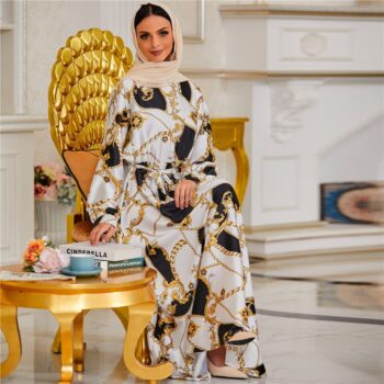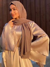 Women Satin Hijab Dress Dubai Abaya Turkey Flare Sleeve Modest Fashion