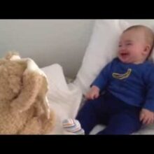 OMG My grandson, who is 10 months old now, can't get enough of this little bear. All he wants if for us to let him play until the batteries give up. But thats ok. The sound of his giggles and that over powering smile is well worth the price of the constant " Hello Baby, lets play peek a boo.".