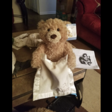 Cutest first teddy bear I have ever seen. I want one for myself!!!!!!