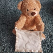 Add the perfect playtime companion to your baby’s collection of toys. Our super-soft Peek-a-Boo Bear Toy is ready to play peek-a-boo with his own warm, satin-detailed blanket. Keep your child entertained with a new furry friend that talks and moves.