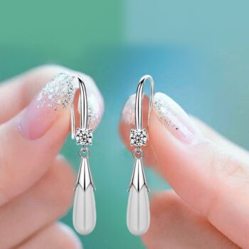 White Pink Round Small Zircon Drop Opal Stone Dangle Earrings