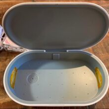 It was delivered in less than half the time and in perfect conditions. I love the design and the size is just perfect. Fits pretty much everything that I need clean: phone,toothbrushes, make up accessories, cutlery, my stainless steel straw, my baby’s pacifiers and bottle nipples. But it’s also compact and perfect for travelling too. Now I just use the uv-pod and it’s all clean in a few minutes. Overall I’m really happy with it.