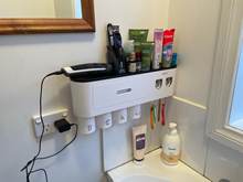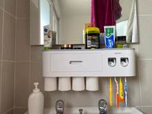 2. Multifunctional toothbrush holder, which integrates toothbrush holder + 2 toothpaste squeezer + storage in one, does not take up space, and is convenient and practical