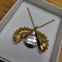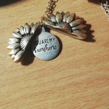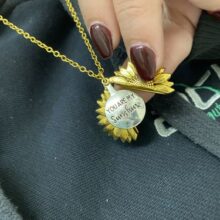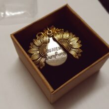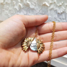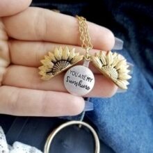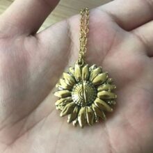 Send the message of love and appreciation with this beautifully-crafted sunflower necklace with a moving message inside.